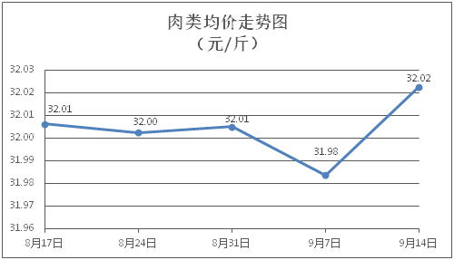 肉类商品价格有所回升。所监测的8种肉类商品价格波动情况为5涨1跌2平,综合零售均价为每斤32.02元,环比上涨0.12%。其中:排骨、精瘦肉、牛肉、带骨羊肉零售均价分别为每斤30.28元、19.01元、46.36元、41.99元,环比分别上涨0.17%、上涨0.74%、上涨0.15%、下降0.05%。