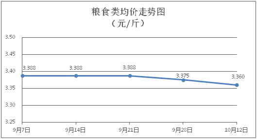 粮食类商品价格微幅下降。所监测的4种粮食类商品价格波动情况为3跌1平,综合零售均价为每斤3.360元,环比下降0.44%。其中:丝苗米、面粉零售均价分别为每斤3.51元、3.32元,环比分别持平、下降0.90%。