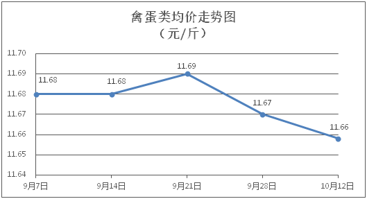 禽蛋类商品价格微幅盘整。所监测的5种禽蛋类商品价格波动情况为2涨2跌1平,综合零售均价为每斤11.66元,环比下降0.10%。其中:白条鸡、白条鸭零售均价分别为每斤20.83元、15.16元,环比分别上涨0.10%、上涨0.26%;鸡蛋、鸭蛋零售均价分别为每斤6.37元、7.04元,环比分别下降0.47%、持平。