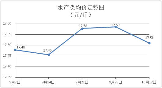 水产类商品价格总体略降。所监测的9种水产商品价格波动情况为3涨6跌,综合均价为每斤17.51元,环比下降0.43%。其中:草鱼、鲫鱼、鳙鱼、基围虾零售均价分别为每斤11.29元、14.06元、10.70元、28.94元,环比分别下降0.44%、上涨0.36%、下降1.65%、下降0.65%。