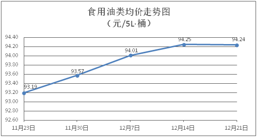 食用油类商品价格稳中有降。所监测的食用油(5L装)商品价格波动情况为2跌7平,综合零售均价为每桶94.24元,环比下降0.01%。其中:鲁花花生油、金龙鱼调和油零售均价分别为每桶156.42元、70.12元,环比分别下降0.03%、下降0.07%。