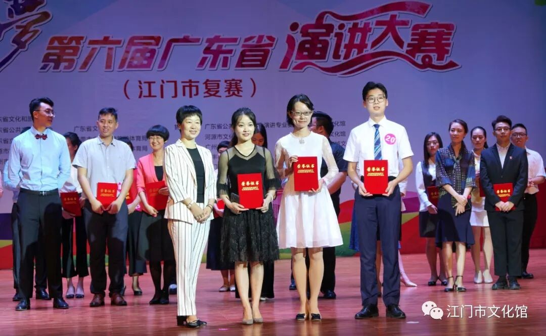 11月3日上午,一阵阵慷慨激昂的朗诵声响彻江门市文化馆二楼文化剧场。为贯彻习近平新时代中国特色社会主义思想和党的十九大精神,弘扬社会主义核心价值观,彰显中华民族优秀文化内涵,挖掘和选拔演讲人才,提高我市群众演讲水平,我的梦——第六届广东省演讲大赛(江门市复赛)正在这里举行。30余名来自江门各市(区)各行各业的演讲爱好者参加了比赛。经评委公平、公正、公开评定,我区文化馆选送的5名选手们荣获1金2银1铜1优秀的佳绩,其中聂亚男获得金奖;陈诗卉、张莹莹获得银奖;伍映珊获得铜奖,陆月如获得优秀奖。前5名将代表江门市参加下一轮赛事,其中有3名是我区选手!▲ 银奖—陈诗卉 演讲标题:《我想大声说出我的梦》