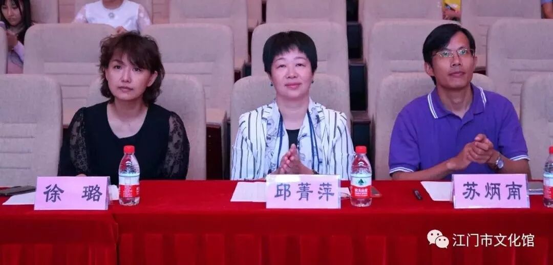 大赛特邀广东省普通话测试员、江门市朗诵协会理事、江海区文化馆馆长邱菁萍,江门市朗诵协会理事、首届广东省风雅颂朗诵比赛金奖获得者徐璐,中国田汉戏剧研究会委员、广东省公共文化促进会理事、江门市文化馆信息部主任苏炳南担任评委。