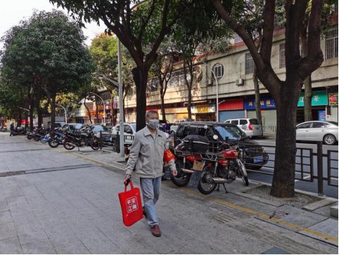 近日,榕叔收到录有防疫宣传音制品的便携式流动喇叭,他说:“我早有这样的想法了。这样我带着走到哪里,都能做到防疫宣传劝导,真是又快又好!”图为榕叔带着便携式流动喇叭去“巡逻”。