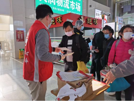“高新区(江海区)一共设了6个联合检疫站(卡口),我只是身处战‘疫’一线的两百五十七人之一。每天站岗,我坚守在江门东站的出入口,发放防疫知识宣传单,协助他们做好身份登记和申报健康情况,维持站内秩序。虽然常常要持续几个小时不停的工作,但在我们的积极宣传指引下,旅客们能够做到到达后一小时申报,站内也避免了人员堵塞,感觉自己也为防疫工作贡献了一份力量。”