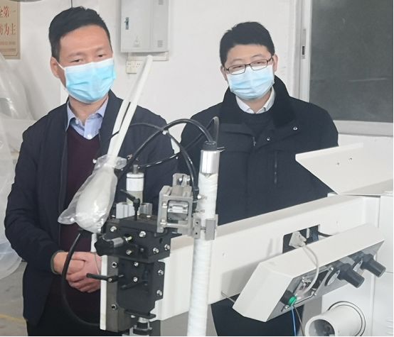 欧晖博(右一)在蹲点企业为企业做好协调服务