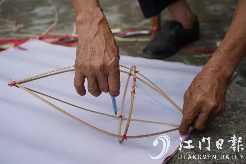 在扎鱼骨架的过程中,荣叔看到一旁一个绑好的鱼骨架,接口处红绳有一点点松动,他赶紧拿起来拆掉重做,他说:“坚决不能有任何瑕疵,手艺活来不得半点马虎,孩子们拿着这个鲤鱼要跑很多地方,一定要足够结实。”