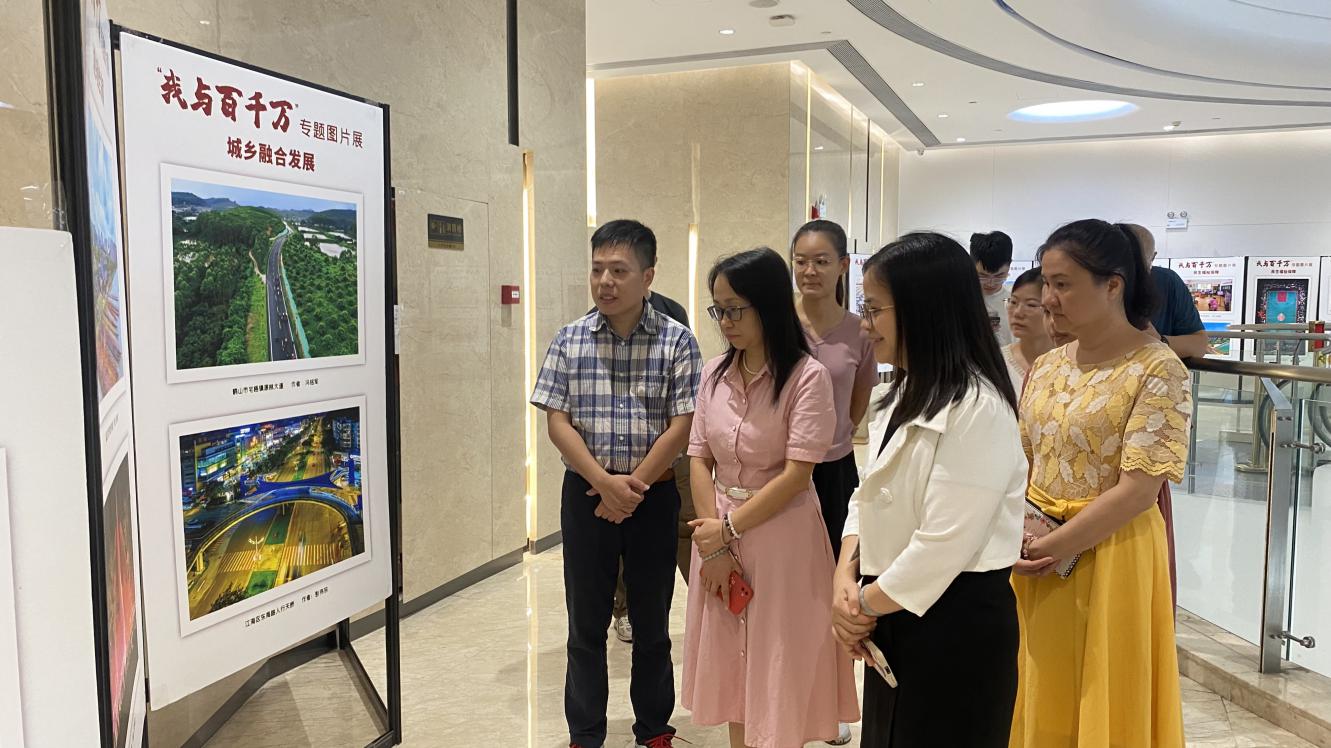 参观过程中,一张张关于“百千万工程”建设的精美图片呈现在眼前,生动展示了江门市深入推进“百千万工程”的举措及成效。大家认真观摩、互相交流,感受着江门高质量发展带来的震撼与感动,体会到我市在“百千万工程”推动下的进展与变化,进一步提高对“百千万工程”在城镇建设、乡村振兴、城乡融合、基层治理等方面重要作用的理解和认识。
