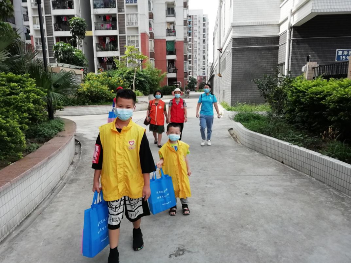 从那以后,小豪就成了我们“七彩桥”的“铁粉”。从“小手牵大手”文明行,到“美德少年行”的探访活动,再到每年寒暑假的“梦飞翔”冬夏令营,总能看到他的身影。最让我感动的是,他总是像个小跟班一样,跟在妈妈后面参加志愿服务活动。妈妈雁姐是我们社区出了名的“最美志愿者”,她背着残疾老人上下车的背影,她走访邻里嘘寒问暖的声音,都深深地印在了小豪心里。他开始学着妈妈的样子,去帮助比自己更小的小朋友,去给探访的孤寡老人讲笑话,去做一些力所能及的事。