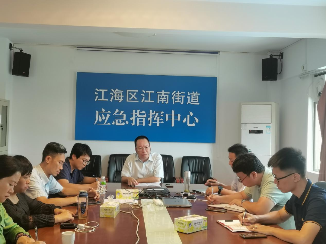 10月8日,在区“三防”工作部署会结束后,江南街道党工委副书记、办事处主任黎翔随即召开防台风工作调度会,部署各项防御工作。