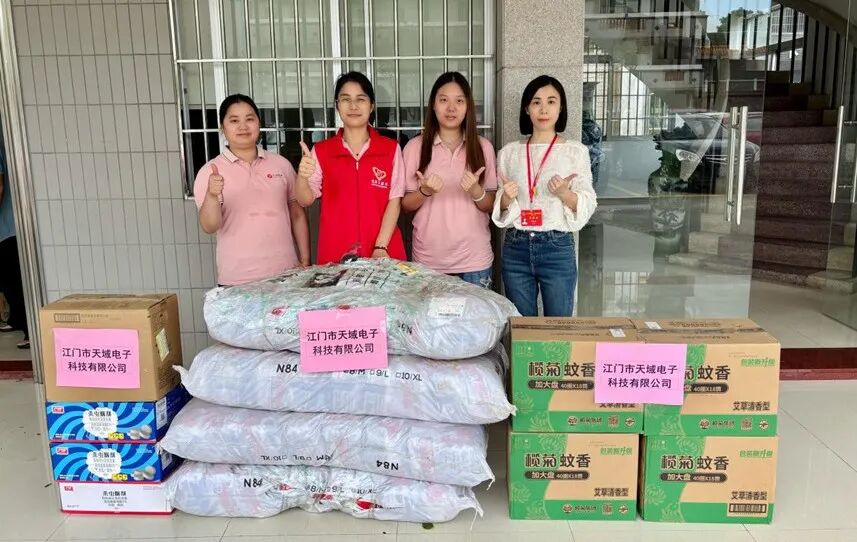 其中,江门市天域电子科技有限公司积极响应,捐赠杀虫烟雾片、榄菊蚊香及浸胶劳保手套等爱心物资。这些物资犹如及时雨,为街道防疫行动提供了有力支持,将有效助力街道开展环境消杀和防疫宣传工作,为居民营造更加安全的生活环境。