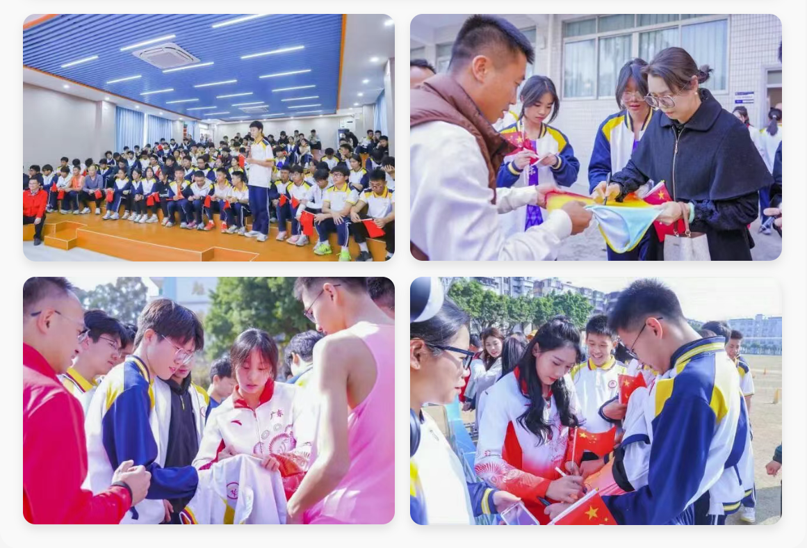 当日下午,全运会冠军团队对首先来到礼乐中学,和该校的师生面对面交流互动,分享冠军背后的故事,生动弘扬拼搏进取的体育精神,激发本地青少年对体育运动的热爱与追求。学子们倍感振奋,争相与冠军合影、索要签名。