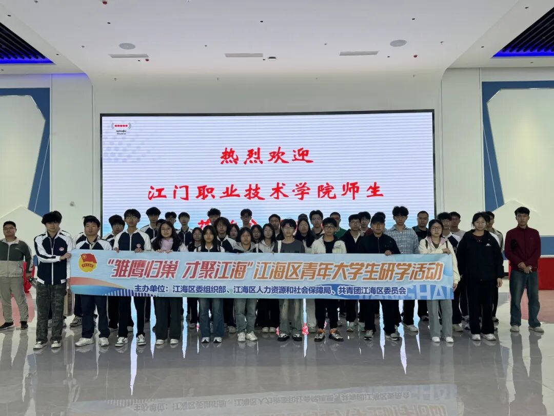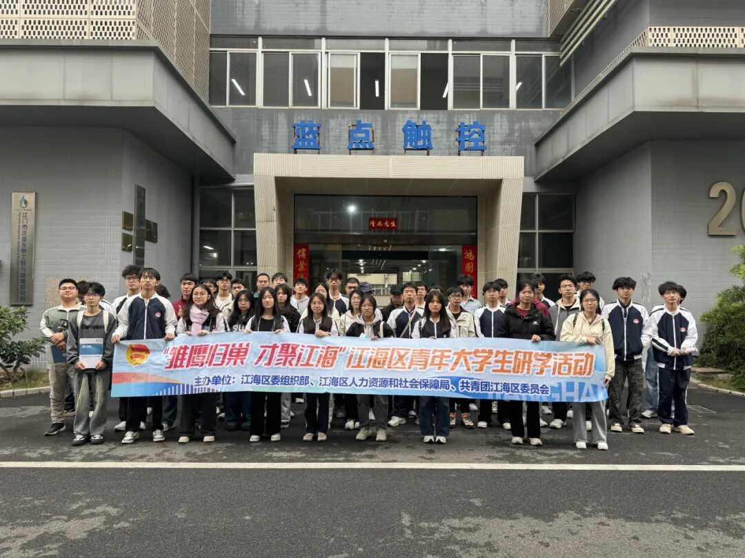为认真落实省“百万英才汇南粤”行动计划,结合江门共青团助力构建现代化产业体系八项举措要求,助力青年人才留粤就业、留江就业,3月29日,团区委联合区委组织部、区人力资源社会保障局举办2025年第二期“雏鹰归巢,才聚江海”访企研学活动。本次研学活动以高新技术为主题精心设计路线,选取了3家江海区内具有代表性的国家高新技术企业及“江海制造”工业产品展作为参观点,定向招募江门职业职术学院材料与食品学院、智能制造与装备学院和信息工程学院专业在校大学生43名。