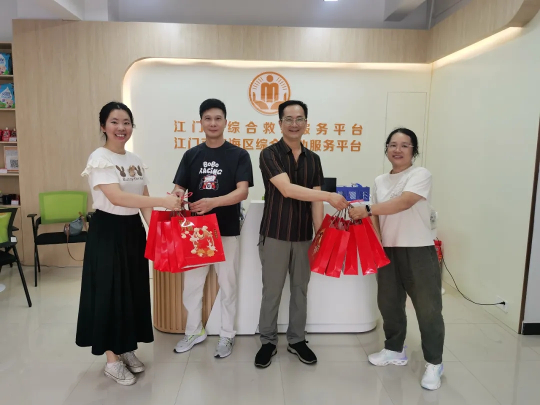 本次“敲门送暖”行动中,除了社工与平台工作人员的辛勤付出,江海区大手牵小手义工服务队、江海区天露义工服务队、江海区莞赢义工服务队、江门爱尔新希望眼科医院、江南小学也积极响应号召,组织了一支支充满热情的志愿者小队,深入江南、外海、礼乐三大街道,协助开展上门派发月饼及慰问物资的工作,用脚步丈量社区的温暖,用陪伴点亮节日的温情。