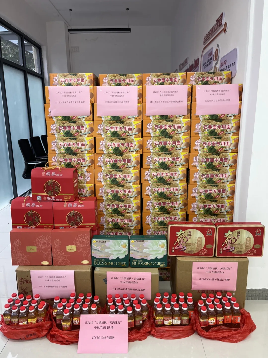 同时,江门市雪峰寺还捐赠食用油1400支,江海区社会服务发展中心筹集面500箱……这些爱心汇聚成河,让原本清冷的中秋,增添一份“大家都在惦记着你们”的暖意。