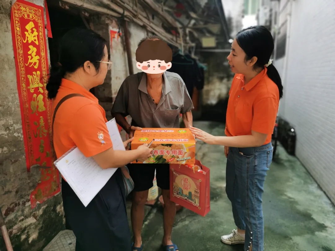 从9月25日起,江海区的街头巷尾多了一群“送月亮的人”。江海区综合救助平台的社工和志愿者们分成小组,带着月饼穿梭在江南、外海、礼乐三个街道的小巷里。敲开一扇扇门时,暖心的祝福也随之送上:“中秋快到了,我们给您送上中秋福袋,里面有月饼、油和面,提前祝您团圆安康!”