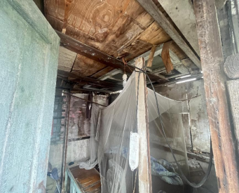 江门市江海区礼乐街道困难退役军人成伯,今年已经77岁高龄,大女儿患有精神残疾二级,儿子患有精神残疾一级,两个孙子还在读书,每月靠着成伯夫妻俩1000多元的退休金和大女儿在市场摆卖蔬菜的收入来维持家里生活的费用和药物治疗开支。成伯家年久失修,门窗烂了都是拿木板来遮挡,存在屋顶漏水、墙面剥落、杂物堆积等安全隐患,并且能睡觉的地方只有一个简陋的房间和客厅。“能有一个避风的港湾”成为这位老兵最迫切的心愿。