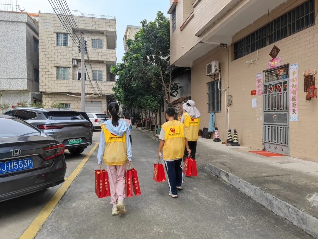 本次“敲门送暖”行动中,除了社工与平台工作人员的辛勤付出,江海区大手牵小手义工服务队、江海区天露义工服务队、江海区莞赢义工服务队、江门爱尔新希望眼科医院、江南小学也积极响应号召,组织了一支支充满热情的志愿者小队,深入江南、外海、礼乐三大街道,协助开展上门派发月饼及慰问物资的工作,用脚步丈量社区的温暖,用陪伴点亮节日的温情。