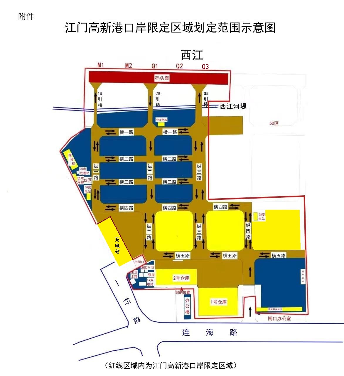 一、高新港口岸限定区域的范围为:红色线条围闭区域内(附件所示)