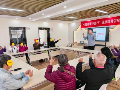 上午9点,江南街道居家养老服务站内已热闹起来。国大药房健康管理师正拿着图文并茂的课件,开展 “心脑健康中国行” 健康讲座,“降压药要按时吃,少吃咸菜多吃蔬菜……” 健康管理师用通俗易懂的语言讲解着健康知识,老人们一边认真听,一边在笔记本上记要点,时不时还举手提问:“医生,我每天吃的药应该早餐前吃还是餐后吃?”“血糖控制在多少算正常?”健康管理师耐心解答每一个问题,现场互动氛围热烈。